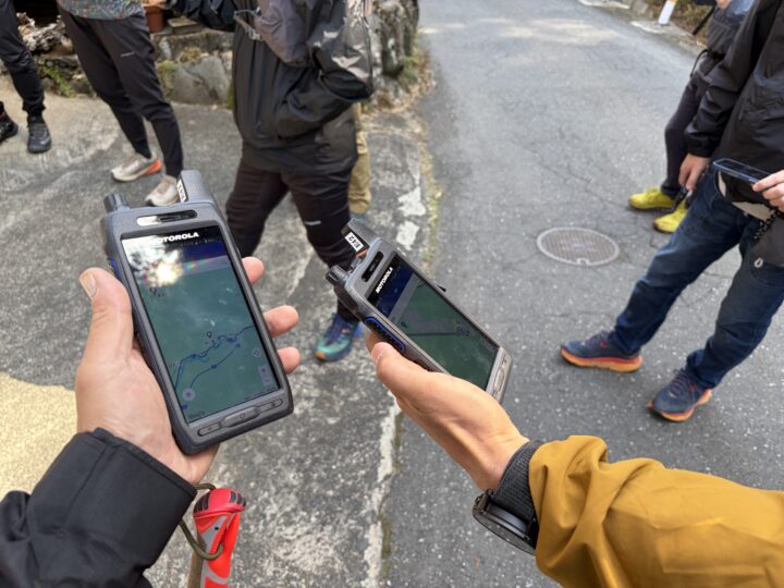通信しながら歩く。誰がどこにいて、どう動いているかを共有する。